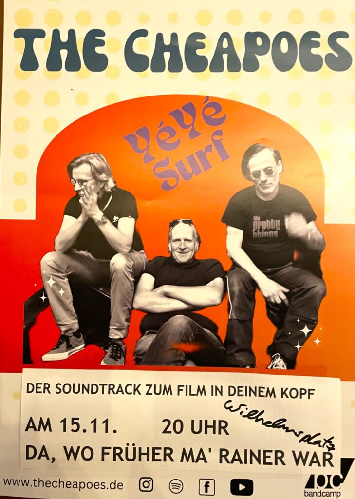 Aus dem Herzen Hagen’s erheben sich The Cheapoes, ein Trio, das ohne Gesang mehr sagt als manch eine Band mit Worten. T-Base (Gitarre), Thomas (Schlagzeug) und Hardy (Bass) haben sich einem Sound verschrieben, der Surf-Rock, YéYé-Beat und experimentelle Dekonstruktion bekannter Melodien vereint – handgemacht, groovig und mit einem Augenzwinkern. Die Musik lebt von Gitarrenwellen, Beat-Rhythmen, Reverb-Spielereien und dem Charme der analogen Klänge.