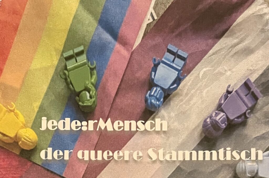 „Jede:r Mensch – der queere Stammtisch“ trifft sich im Soziokulturellen Treffpunkt. Der nächste Termin ist am Freitag, den 28. November ab 19:00 Uhr.