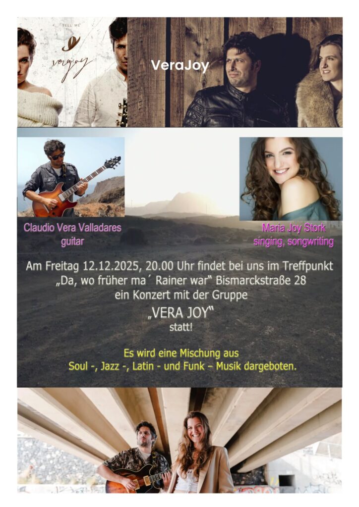 Das Duo „VeraJoy“ kommt im Dezember wieder zu uns. Freitag, den 12. Dezember ab 20:00 Uhr bitte unbedingt vormerken!! Einlass ab 19:00 Uhr.